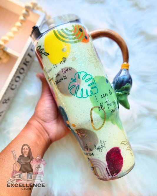 Hand Painted Abstract Tumbler with Paintbrush Handle