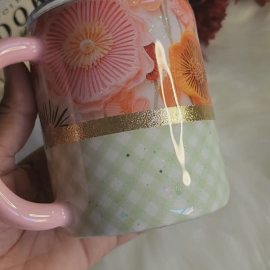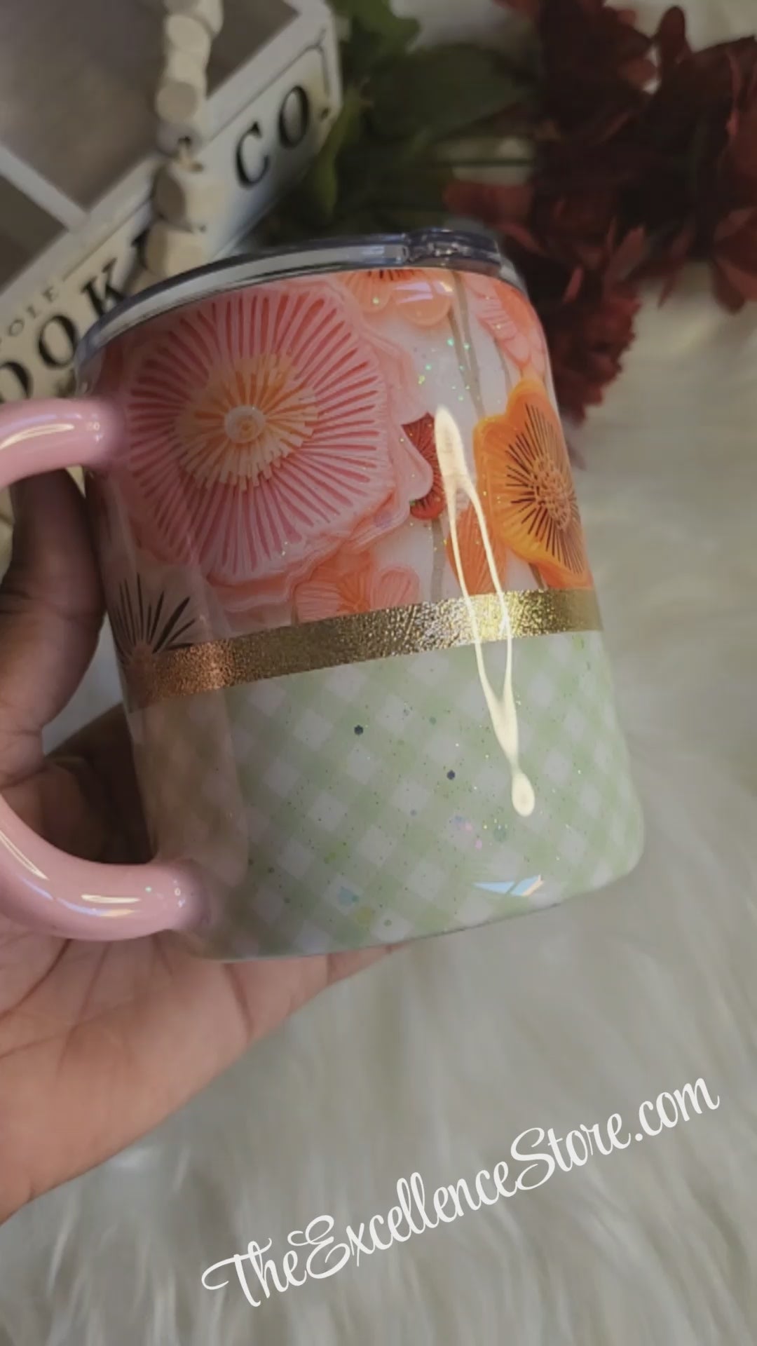 Enjoy your morning coffee or tea in this charming and cozy handmade tumbler mug! Featuring a vibrant, cheerful design, this mug is sealed with a durable epoxy finish for a smooth, high-shine look. It makes a delightful gift for anyone who loves cottage core aesthetics, florals, or a pop of color.